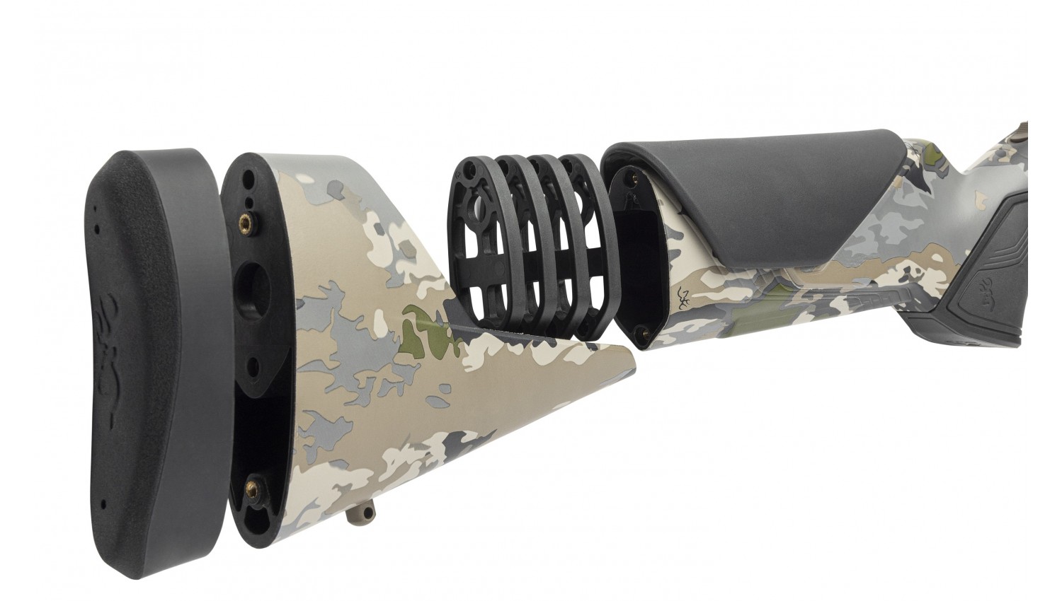 With the Vari-Tech stock, Browning has a configurable stock with adjustment that is on par with many chassis-style stocks. Adjustments can be easily made to the comb height to dial-in the alignment between your eye and optics. Length of pull is adjusted internally with spacers for a solid, rattle-free feel. Even the grip angle can be changed by switching between the sporter and vertical grip modules. On the subject of grip, rubber overmolding on the gripping surfaces provides added security in all conditions.