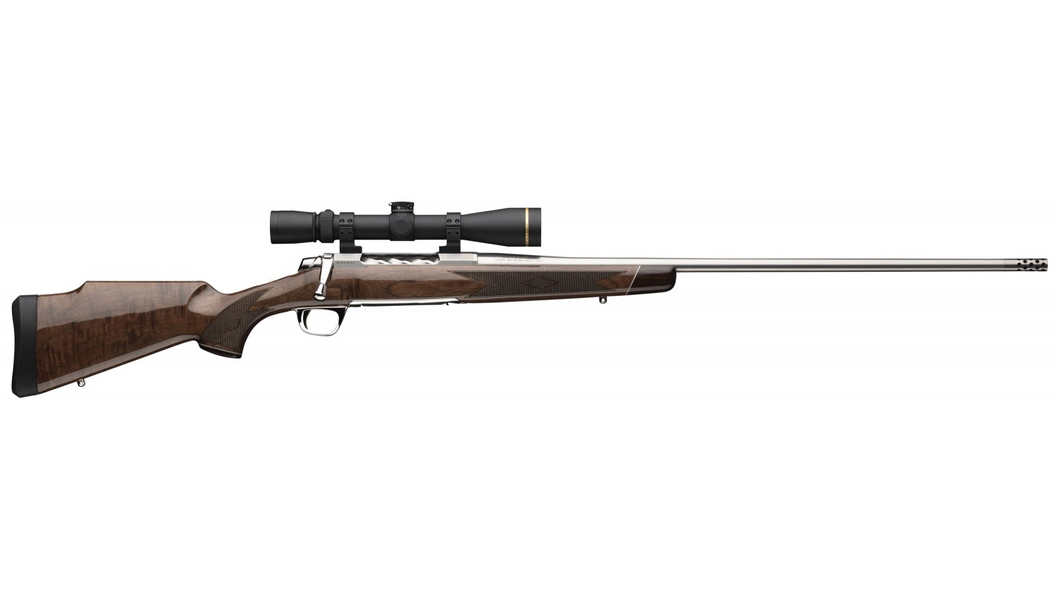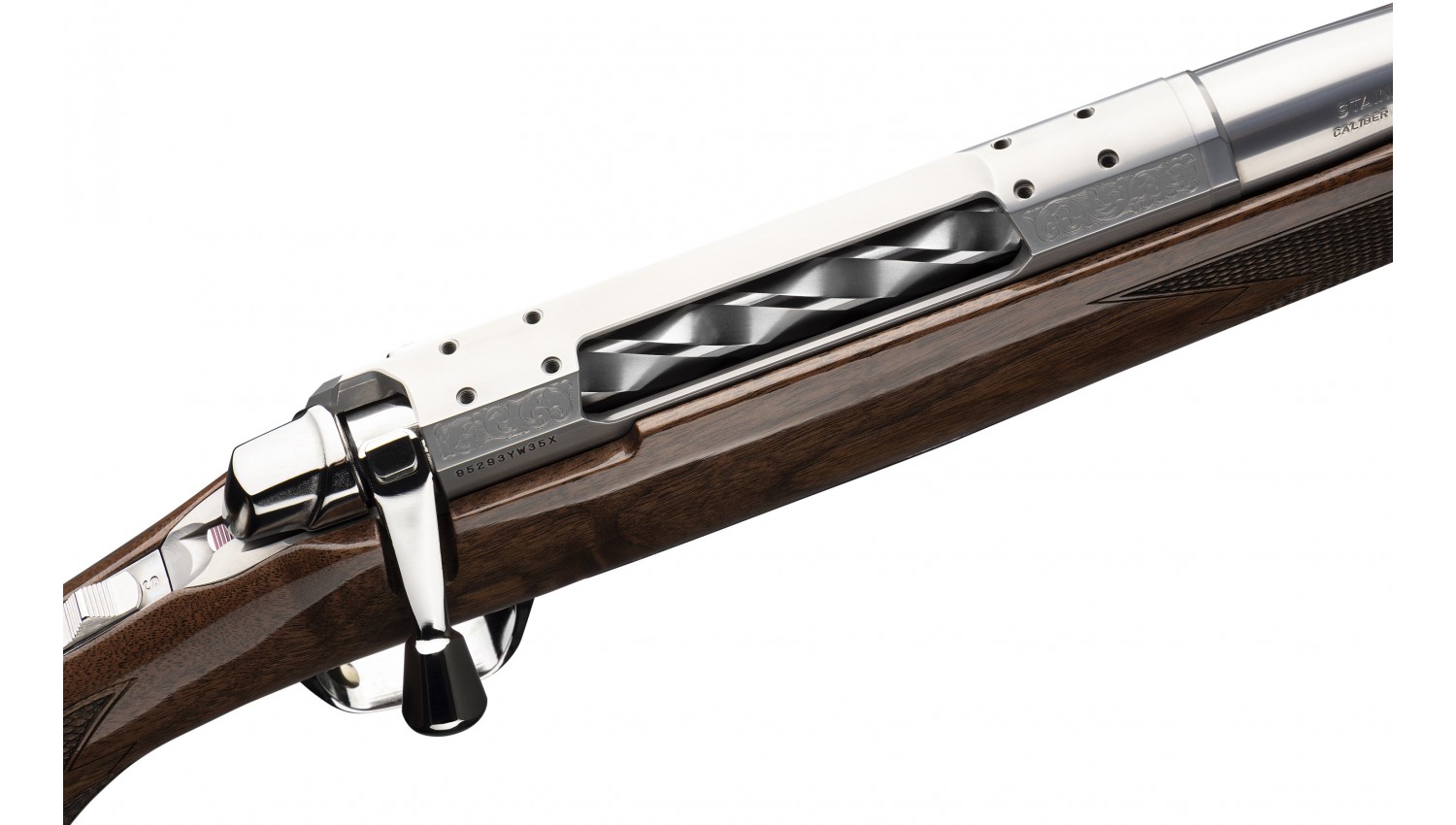 The stainless steel action resists corrosion and looks sharp with the gray finish enhanced by engraving. The spiral fluted bolt assembly is polished to a sheen. Low profile bottom metal ensure the focus is on the stock and raises the bar of elegance.