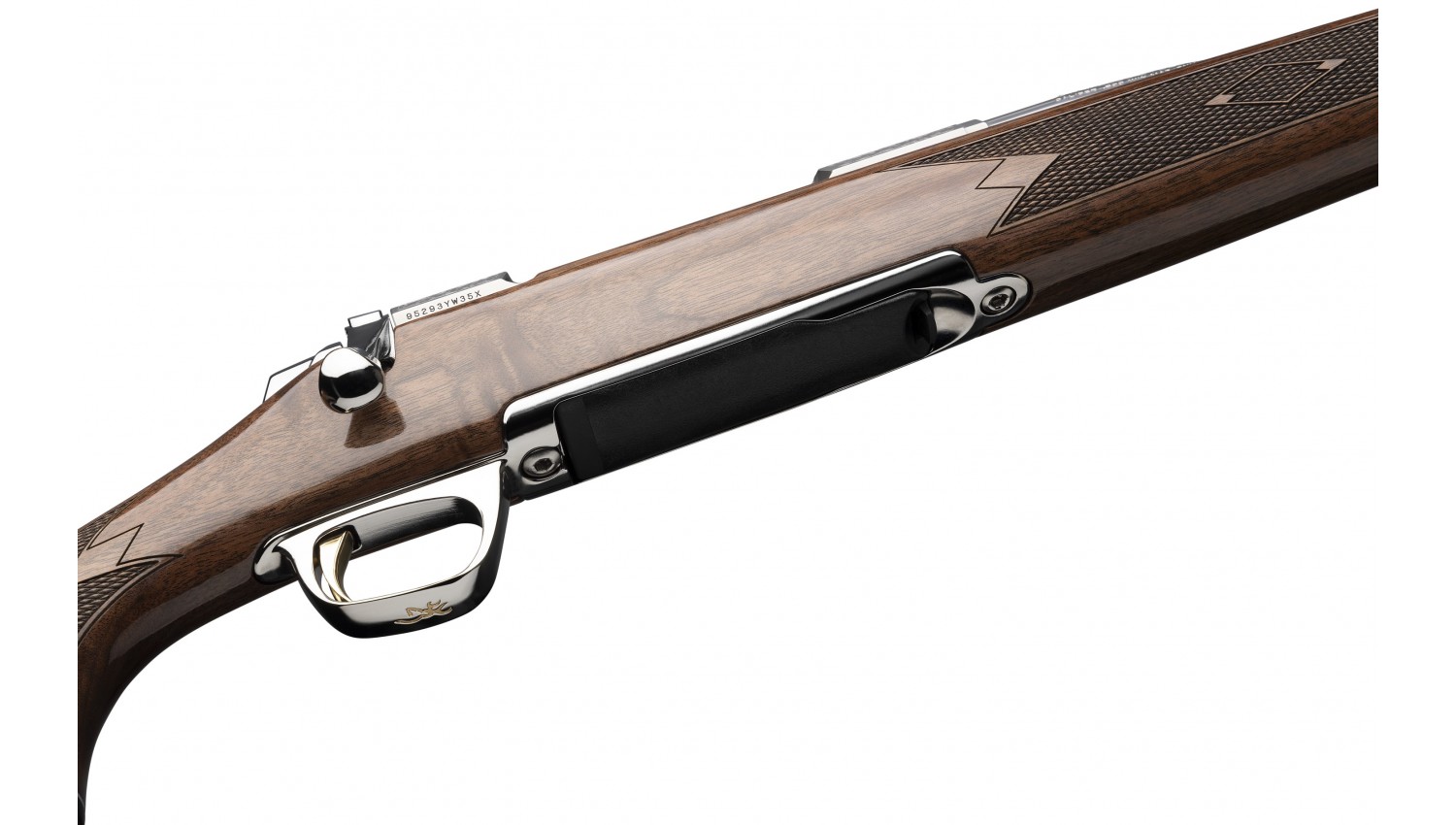 • Gloss finished Grade III/IV checkered walnut Monte Carlo  style stock with rosewood fore-end tip and grip cap