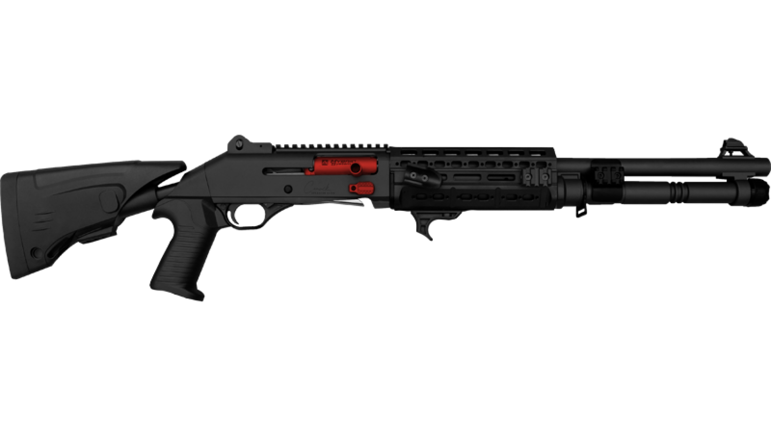 Tags: Canuck, TacOp Elite, 12 Gauge, 3", 18.6" Barrel, Semi Auto Shotgun, Semi Auto, Shotgun, Tactical Shotgun, Firearms, Black/Ruby Red
