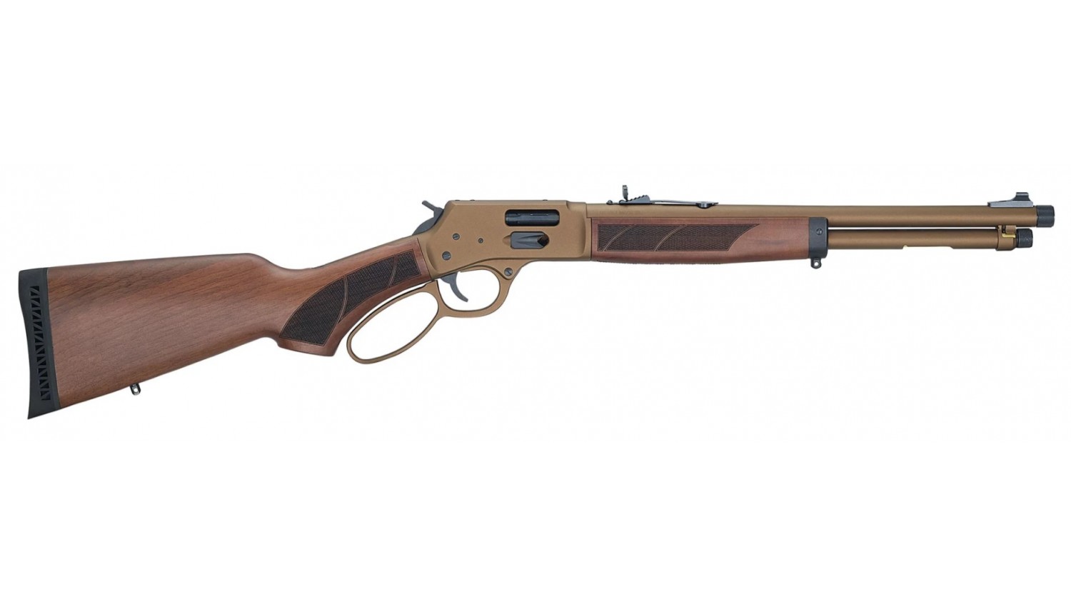 The H12 Explorer Carbine draws its character from the vast, rugged landscapes of the American Southwest. A region defined by sun-scorched earth, canyon stone, and unforgiving terrain. Its Burnt Bronze Cerakote finish reflects those natural tones while delivering the practical advantage of durability. Applied to the lever, receiver, barrel, and outer magazine tube, this protective finish enhances resistance to wear and the elements while giving the rifle a distinctive, custom-shop appearance without the custom-shop price tag.