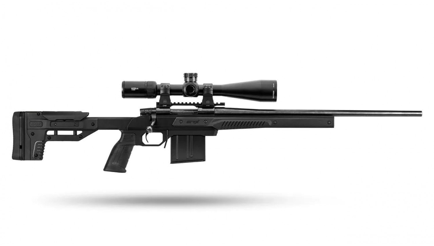 It takes AR15 grips, ARCA rails, M-LOK accessories and has customizable colours. It's designed as an excellent upgrade for shooting matches, hog or coyote hunting, or anyone interested in long-range shooting.