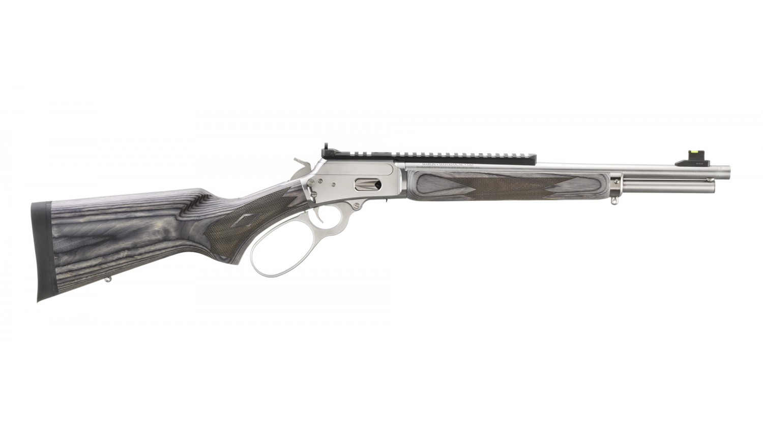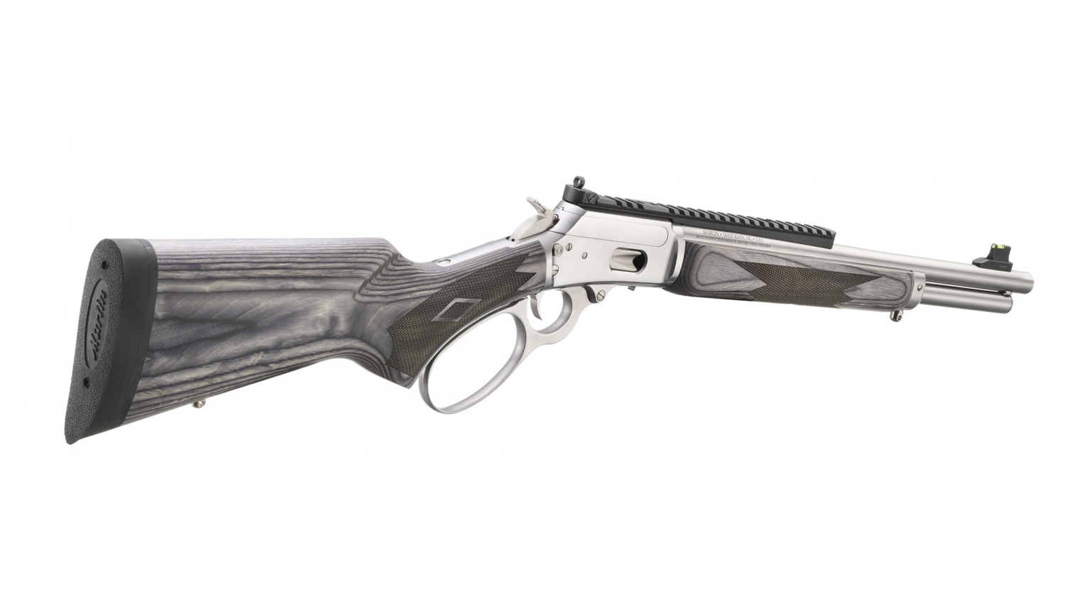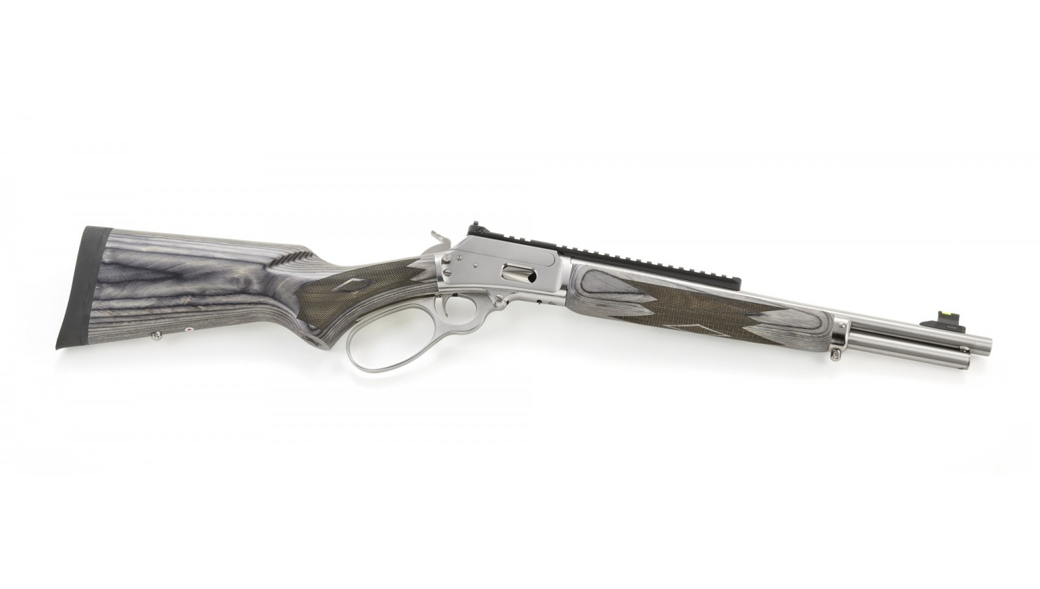 Calibre: 357 Magnum Capacity: 8 Stock: Gray Laminate Material: Stainless Steel Finish: Polished Stainless Front Sight: Fibre Optic with Tritium Ring Rear Sight: Adjustable Ghost Ring Weight: 6.3 lb. | Overall Length: 33.25" Length of Pull: 13.38" Barrel Length: 16.1" Thread Pattern: 1/2"-28 Barrel: Cold Hammer-Forged Stainless Steel Twist: 1:16" RH Grooves: 6 |