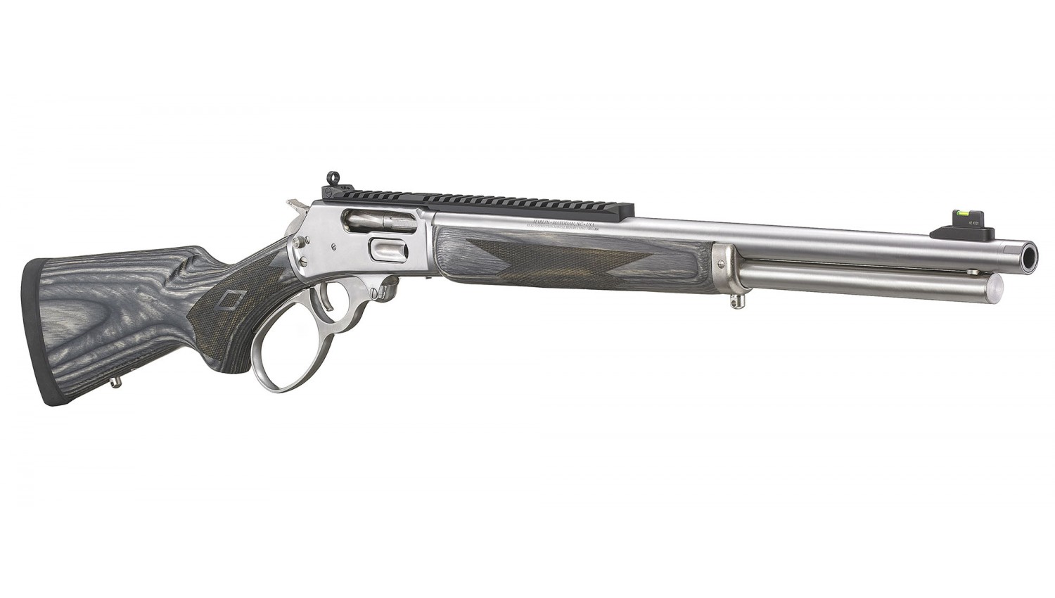 Receiver, lever and trigger guard plate are CNC machined from stainless steel forgings.