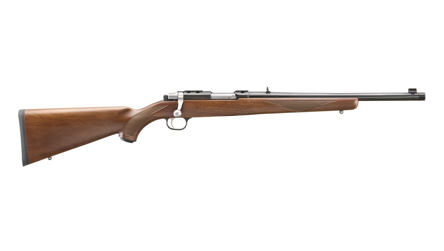 • Integral scope mounts, machined directly on the solid-steel receiver, provide a stable mounting surface for included scope rings, eliminating a potential source of looseness and inaccuracy in the field.