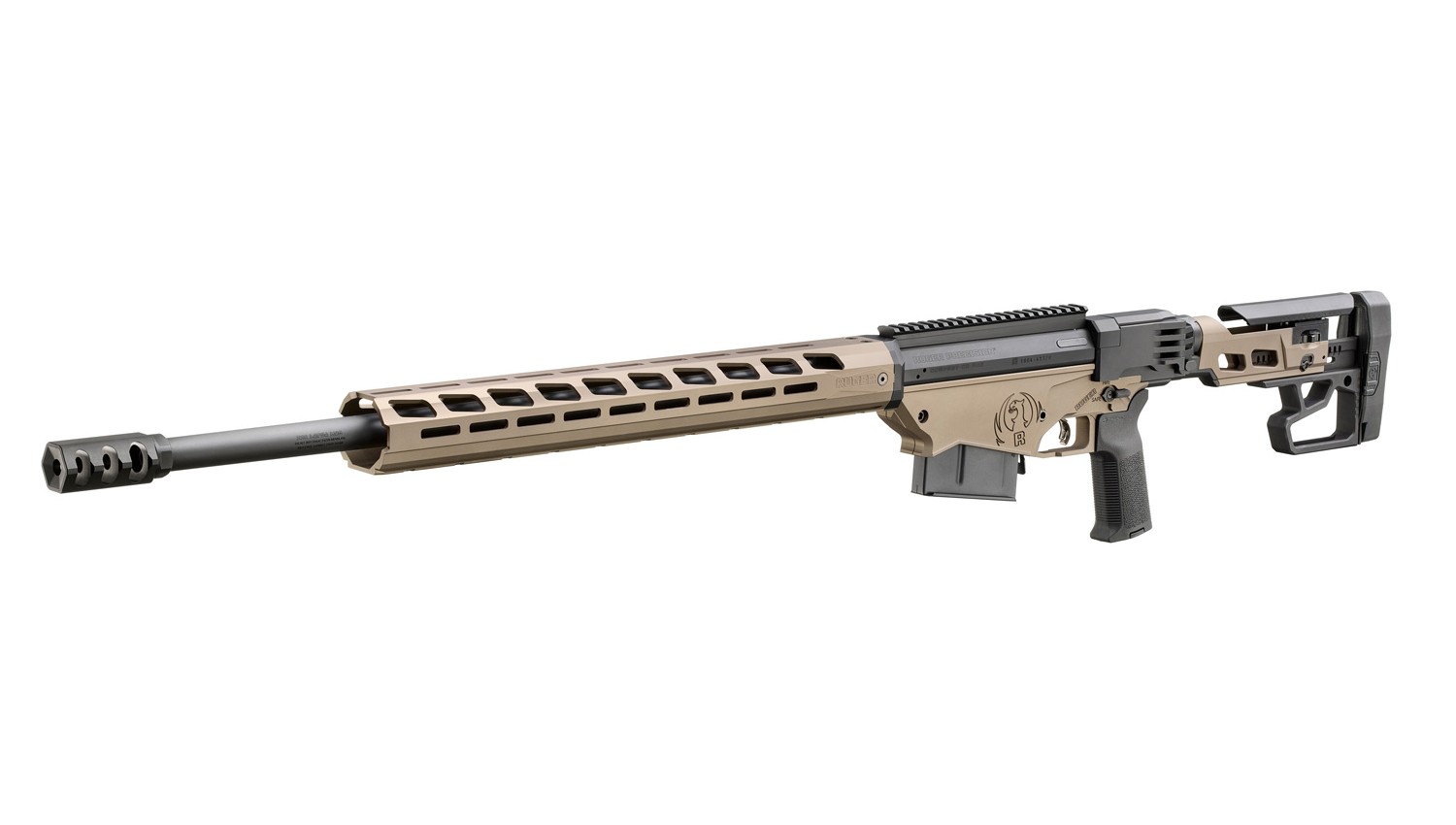 Calibre: 338 Lapua Mag Stock: Folding, Adjustable Finish: Smoked Bronze Cerakote Grip: Magpul MOE-K2-XL Trigger: Ruger Marksman Adjustable™ Capacity: 5 Barrel Length: 26" Thread Pattern: 3/4"-24 | Weight: 15 lb. Height: 7.30" Twist: 1:9.375" RH Overall Length: 49.25" Length of Pull: 12" - 15.50" Folded Length: 37.60" Grooves: 5 |