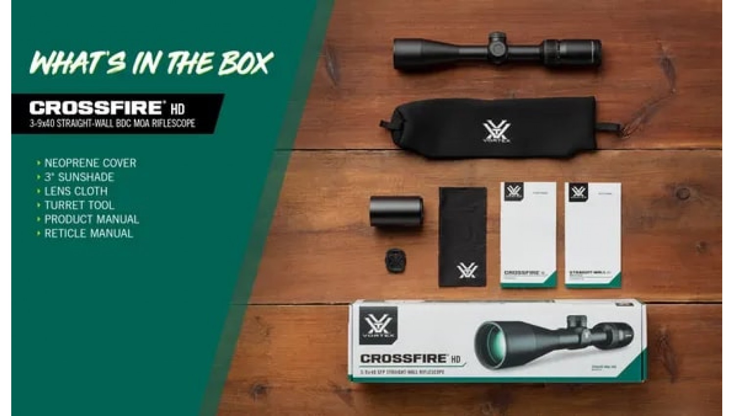 Tags: Vortex, Crossfire HD, 3-9x40mm, 1", Straight-Wall BDC, Riflescope, Scopes, Optics,