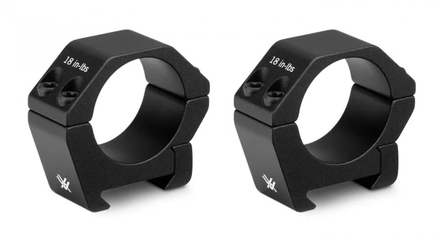 Tube Size: 30mm Ring Height: Low Center Scope Height: 0.80" Mount Type: Picatinny/Weaver® Weight: 1.54 oz. per ring | Cap Screw Bit Size: Torx® T-25 Base Screw Bit Size: Torx® T-25 Cap Screw Torque: 15-18 in-lbs Base Screw Torque: 30 in-lbs |